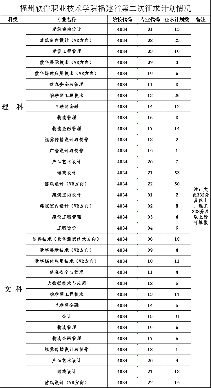 福州软件职业技术学院2018年福建省第二次征求计划志愿情况